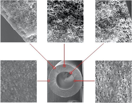 專有共混配方制備海綿體結(jié)構(gòu)PVDF超濾膜,抗拉和抗壓強(qiáng)度大大提高,能更好地適用于污水或者廢水時(shí)的惡劣運(yùn)行狀況和清洗條件。